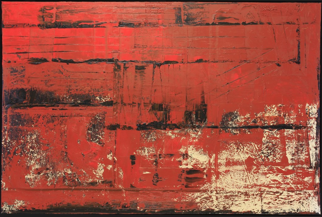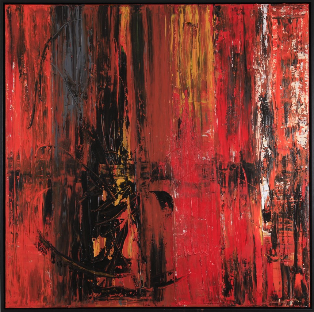 “MAKEUP”: acrylic on canvas, 1400x1000mm, with floating frame“GUM”: acrylic on canvas, 1500x1000mm, with floating frame“SANDSCAPE”: oil on canvas, 1000x1000mm, with floating frame“BUSHFIRE”: oil on canvas, 1000x1000mm, with floating frame“JUNGLE”: oil on canvas, 1500x1000mm, with floating frame“SATELLITES”: acrylic on canvas, 1500x1000mm, with floating frame“METALLIC”: acrylic on canvas, 1500x1000mm, with floating frame“VERMILLION”: oil on canvas, 1500x1000mm, with floating frame“WINTER SUNSET”: acrylic on canvas, 1220x610mm, with floating frame“CAMPFIRE”: acrylic on canvas, 1220x610mm, with floating frame“DESERT”: acrylic on canvas, 900x600mm, with floating frame“INFERNO”: acrylic on canvas, 900x600mm with floating frame“CANDY”: acrylic on canvas, 1200x600mm, with floating frame“HORIZON”: acrylic on canvas, 1500x1000mm, with floating frame
